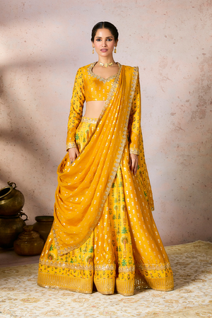 Fabric: Lehenga- Raw Silk | Blouse- Raw Silk | Dupatta- Organza