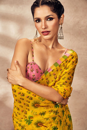 Color: Saree- Yellow | Blouse- Baby Pink
