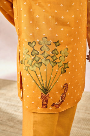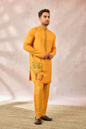 Yellow Spade Blossom Kurta Set