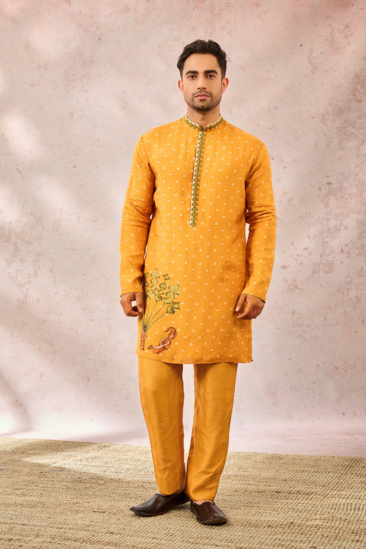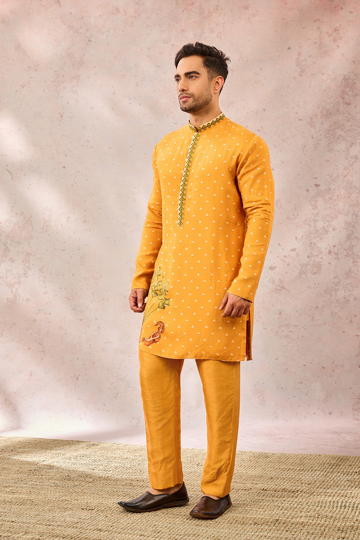 Styling: Pair this vibrant kurta with straight pants and mojris.